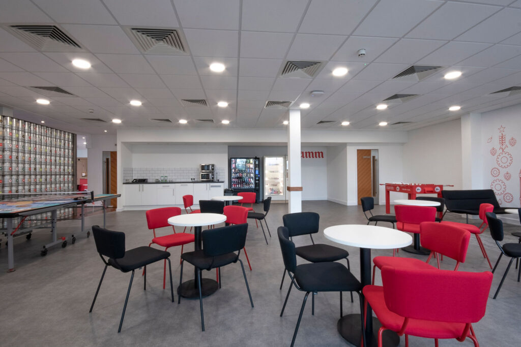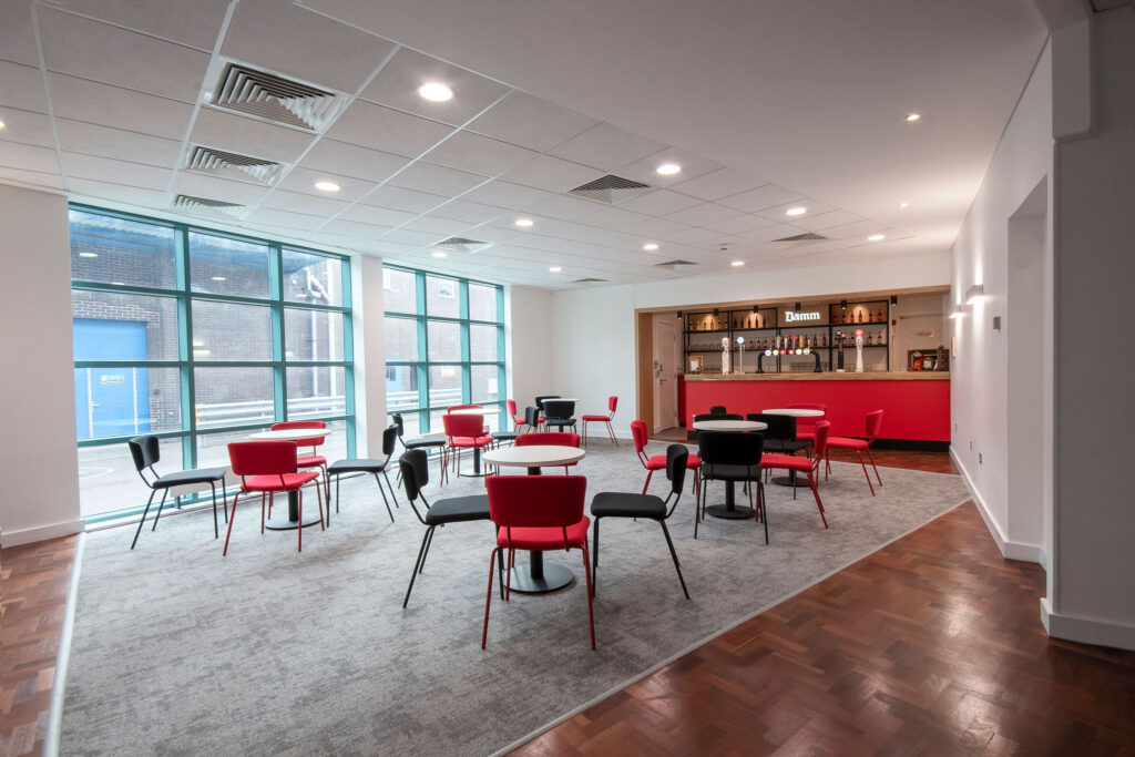 This comprehensive refurbishment project transformed the facility into a modern, vibrant and functional workspace, covering 11 meeting rooms, 7 tea points, a new gymnasium complete with changing facilities, and a full refurbishment of the bar, boardroom, breakout space, and conferencing areas.